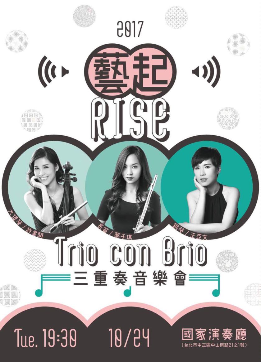 『Trio con Brio 三重奏』創團團員許書閑(大提琴)、蔡子琪(長笛)、王亞文(鋼琴)皆為留美音樂家,以豐富且傑出的演奏經驗,及對於室內樂的熱情,共同激盪出充滿生命力的音樂火花。自2016年首次演出初開始,已計畫多場演出,走入校園、社區、企業、慈善團體等地,並佐以舉辦講座與貼近觀眾的互動解說沙龍音樂會,定期發表演出,以達推廣音樂的初衷。樂團獨具特色與活力的音樂與風格,深得聽眾的喜愛及支持。